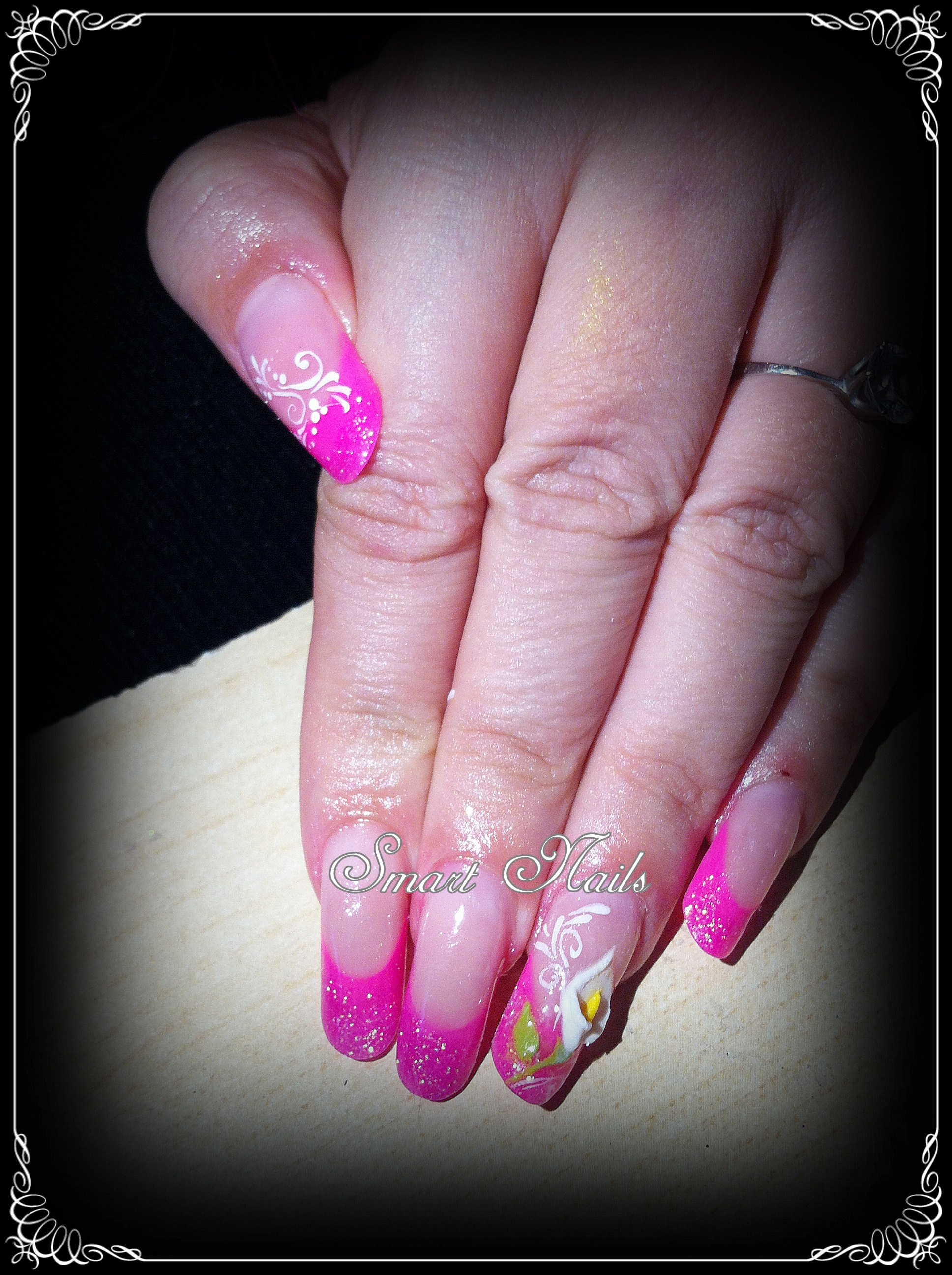 tentative de 3D la seconde sur ma main, javais fait une rose mais elle avait plus l'air fanée qu'autre chose alors j'ai tenté l'arum le seul qui m'inspire et que j'arrive a peu pres a faire
