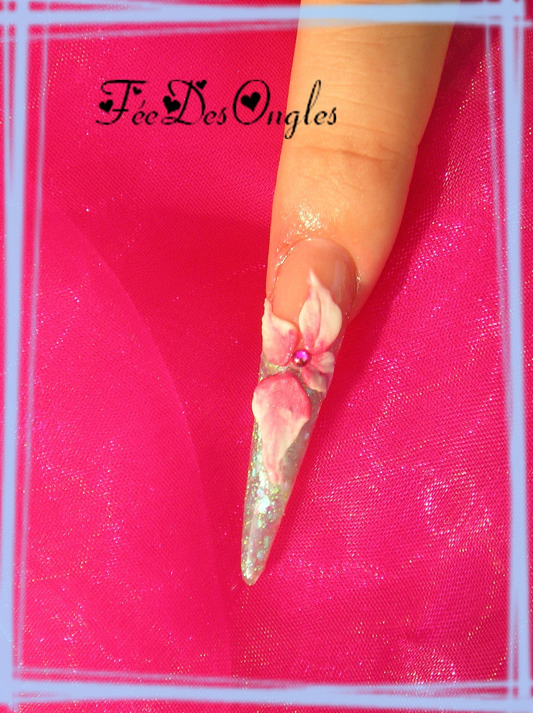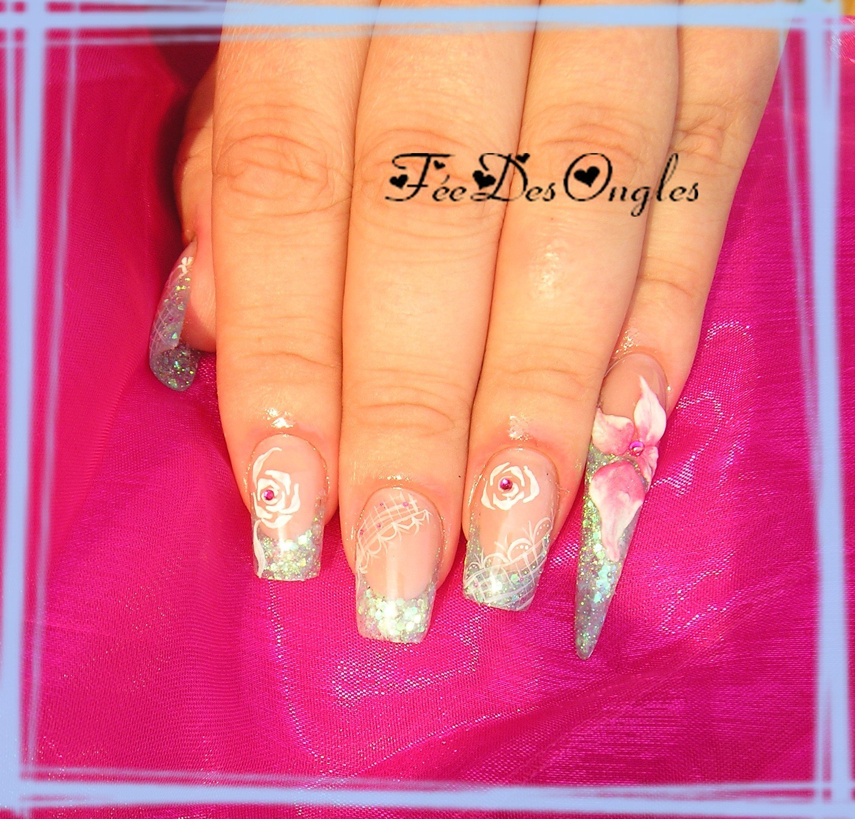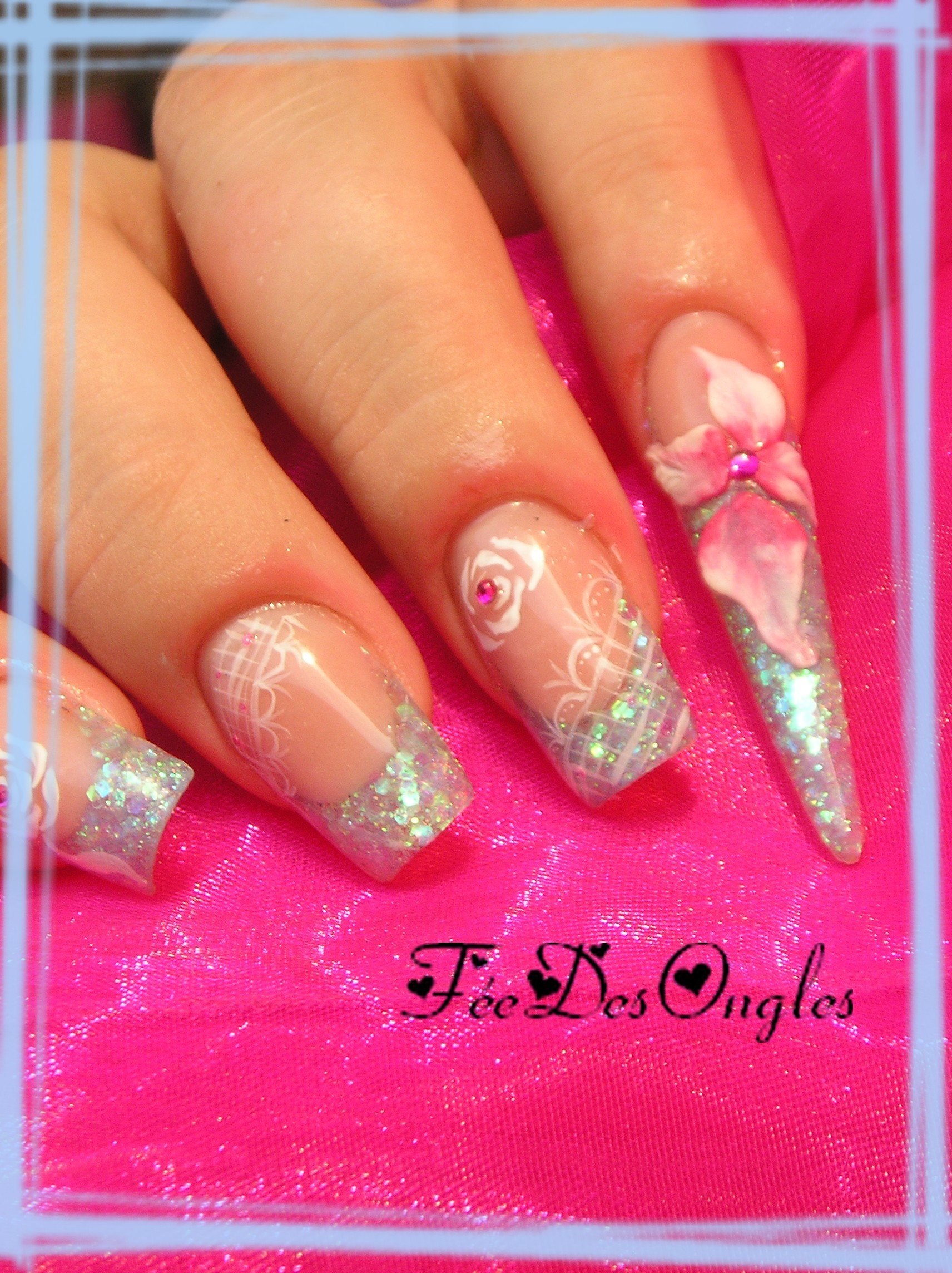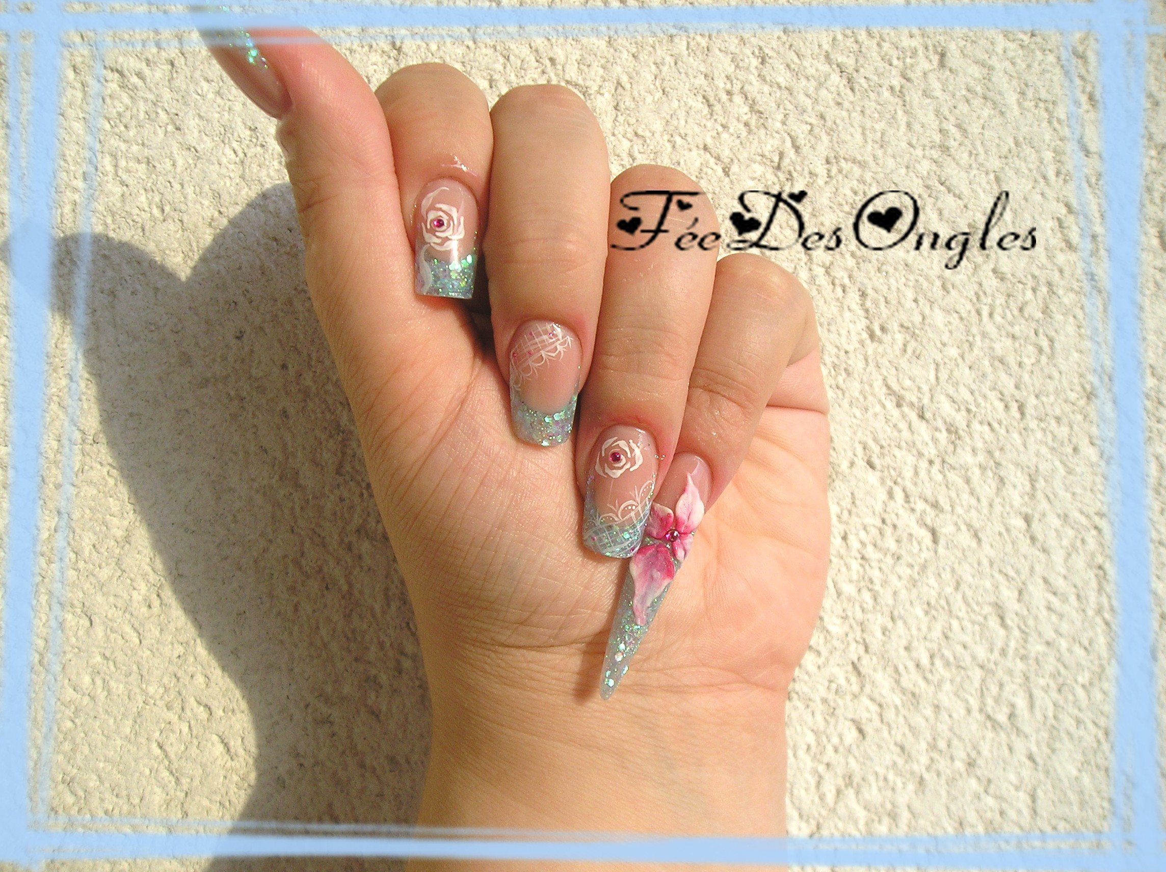 joliiiie pose ! j'aime bien ce style de french paillettes ça fait tjrs sont petit effet ! c'est pas flagrant le limage de ton index et le 3d est chouette ^^