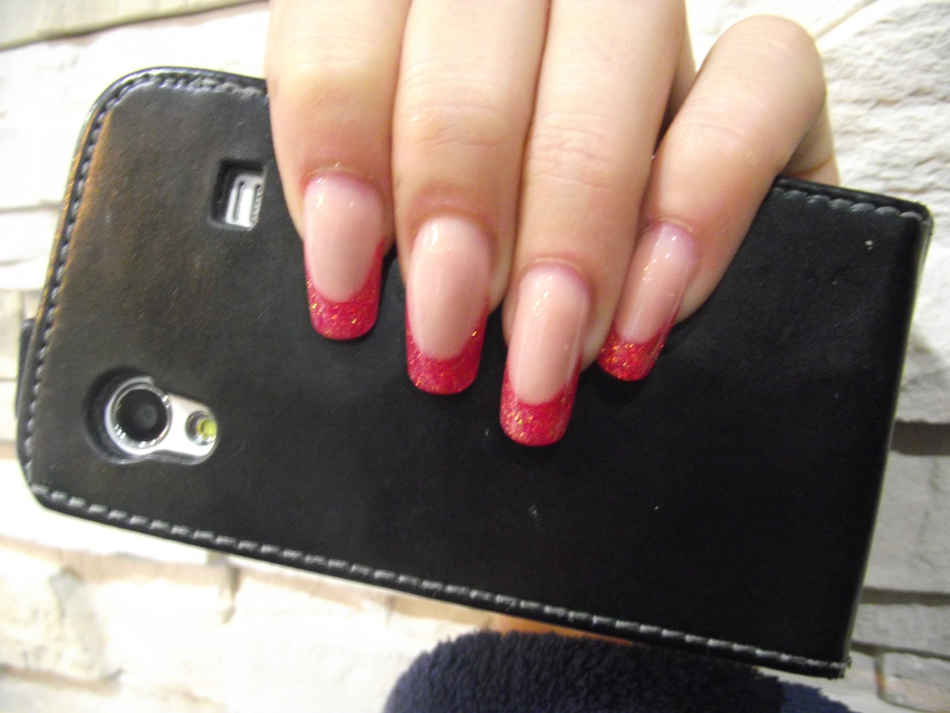 voici ma pose carré violet sur main droite et rose sur main gauche le tout en resine,