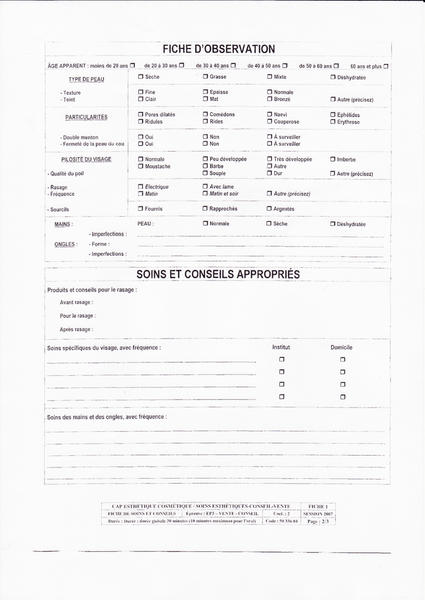 pour la fiche a remplir, c'est une sur le produit ou sur le type de peau de la cliente ?