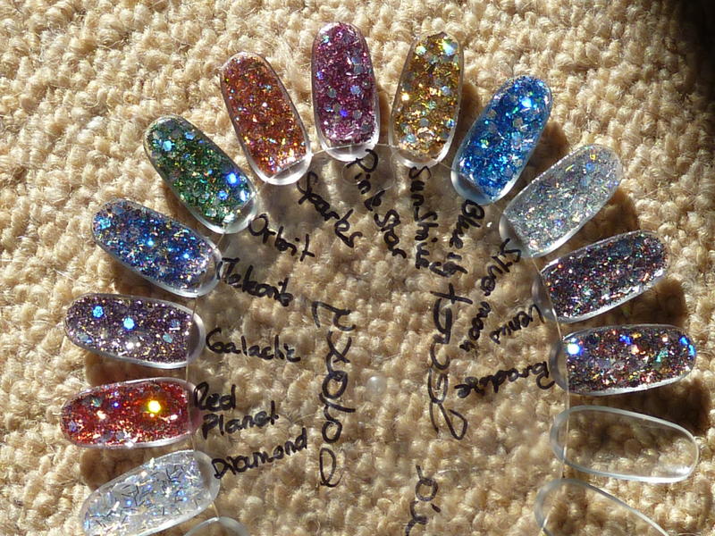 Re : ORGANIC NAILS nuanciers, poses et vidéos ! Voilà le nuancier de GALAXY.... de la bonne grosse paillette!!!! un peu grossier à mon goût...