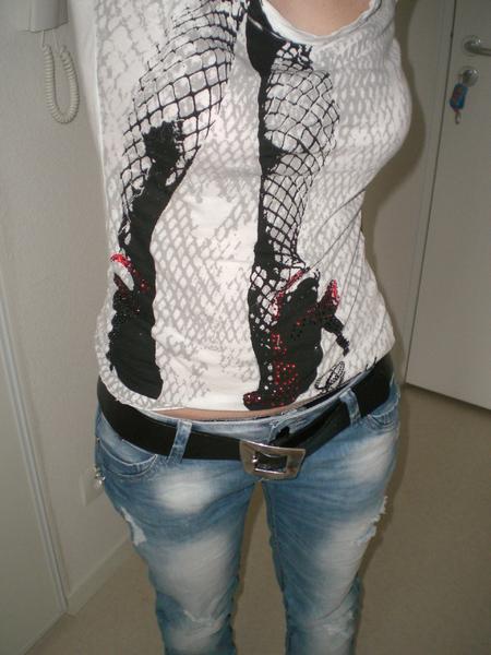 Moi aujourd'hui j'étais tellement déprimée par le temps que j'ai mis, un jeans levis strech déchiré (c le modèle) un sweat à capuche American Eagle coloré (féminin hein) et un top... J'ai regretté en voyant les éclaircies d'après midi! Demain, je poste promis.