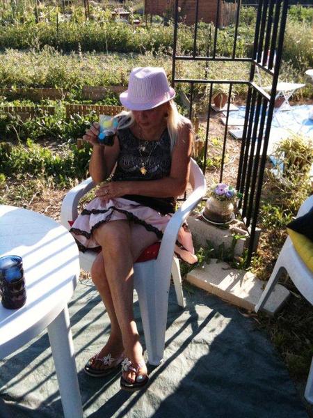 aujourdh ui au potager, pendant ma pose cigarette, ihihihihi, petite robe en voile noir et bas couleur saumon, trés fluide et légère, j adore,:flocool: