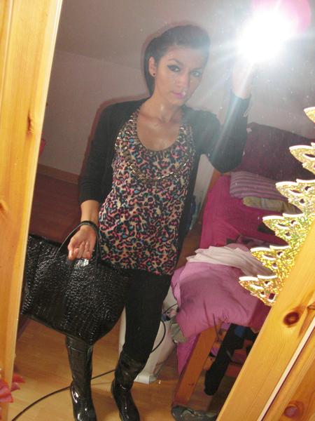 Bon voilou ma tenue de hier...comme il pleuvait j'ai ressortis les bottes de pluie assortie au sac!:happy:
