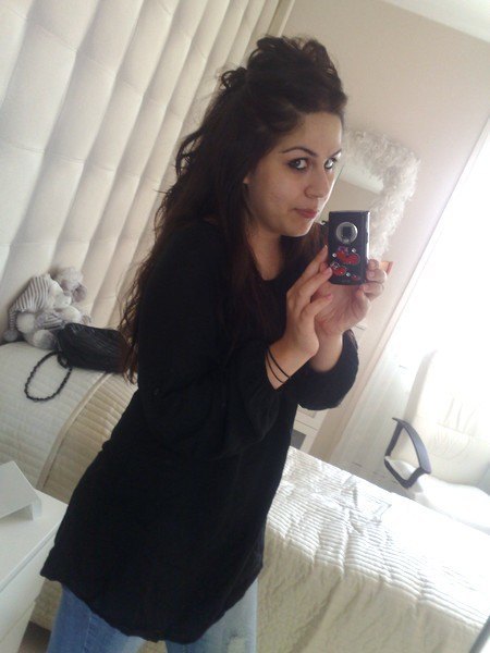 Bon allez j'ose loooooooool rien d'extraordinaire, une blouse légére noire, avec un slim couleur clair.. et j'ai fait un délir avec mes cheveux lool