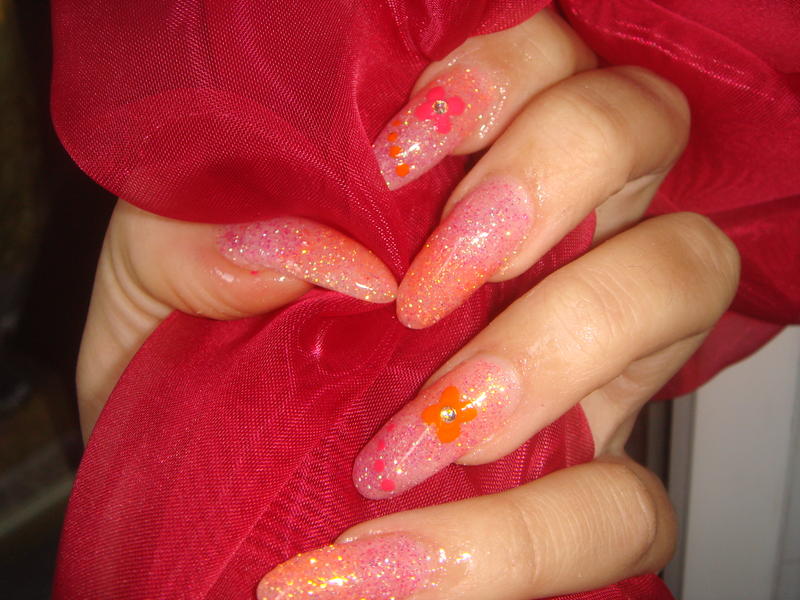 c trop beau!! j'aurais pas eu l'idde de mettre des paillettes roses et orange ensemble mais ca fait super en fait!!!