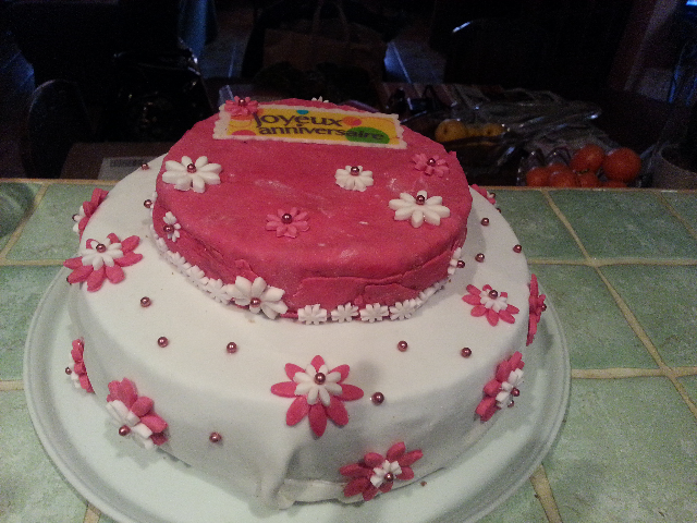 Ben pour le gâteau j'ai fait celui que j'ai l'habitude de faire en doublant les doses pour avoir une belle épaisseur de gâteau. Et pour la pate a sucre je l'ai trouvé sur internet. J'ai ajouté une ganache à la vanille au milieu du gâteau. .Si vous voulez la recette pas de soucis.