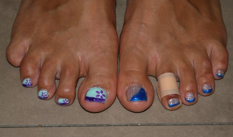 je suis plutot super classique juste french et stickers ou alors petit liséret de couleur et bien voilà, c'est dimanche soir et après une dure semaine j'ai succombée, j'ai pété un cable et me suis noyée dans la couleur !!!!! histoire de faire des essais.