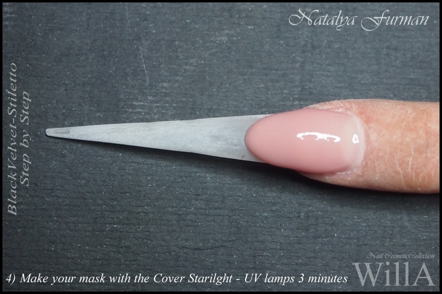 4 ) Faire votre mask avec le gel de camouflage "Starlight". UV lampes 3 minutes.