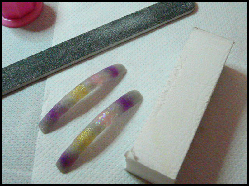 une fois que la résine a bien seché,on égalise au maximum grpace à la lime si besoin est est,et surtout au buffer ...