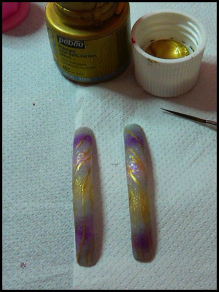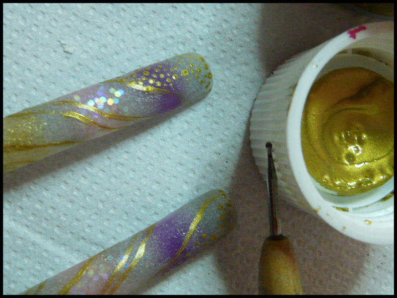 quelques points de taille différentes au dotting,toujours avec notre peinture dorée ...