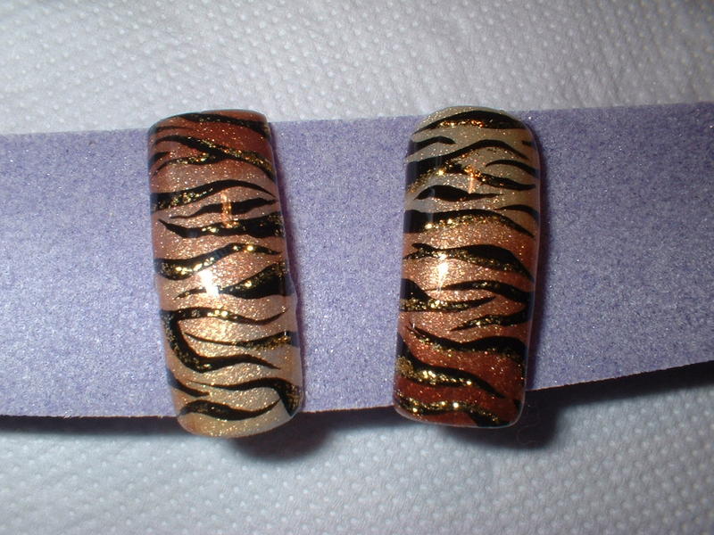 -1- Matériel: gels de couleur (or, beige doré et marron cuivré), Flexbrush, ou peinture (or et noir).