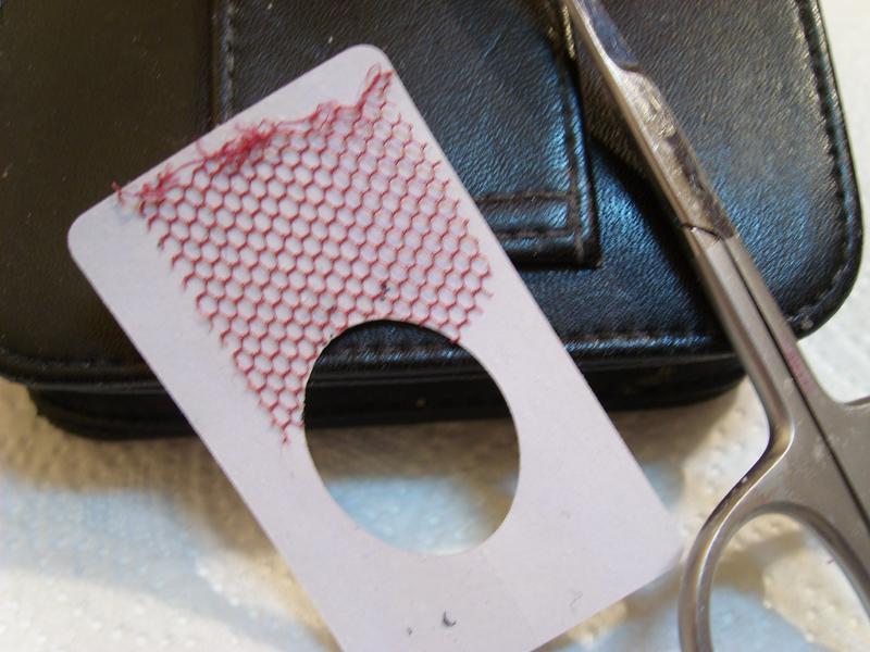 photo 3 : couper la résille en suivant l'arrondi du chablon