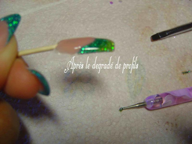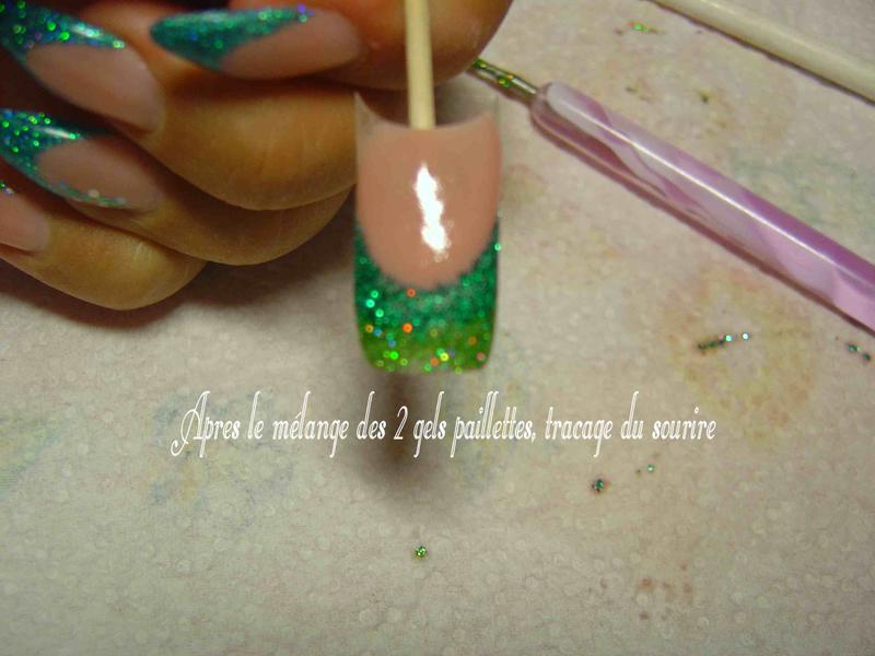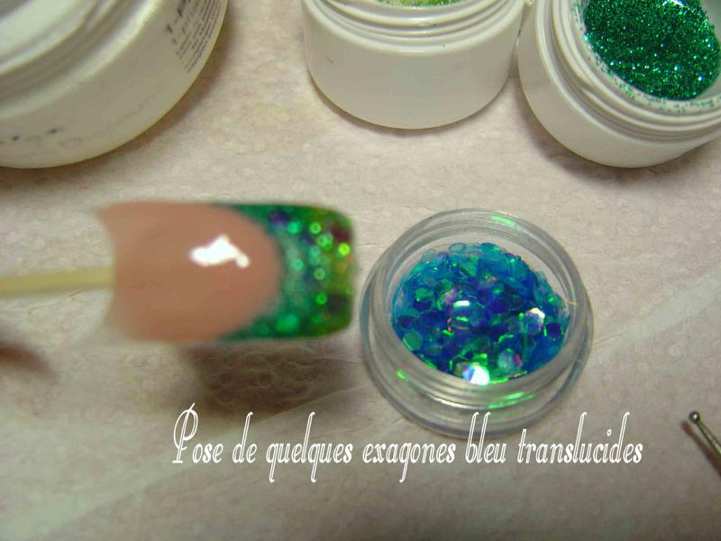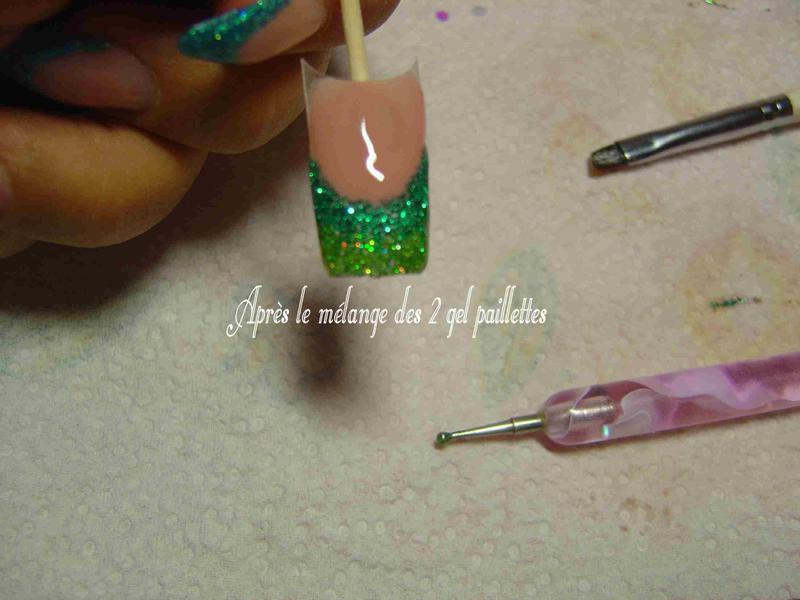 Re : Pas à pas dégradé gel paillettes vert/turquoise