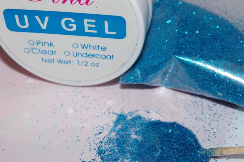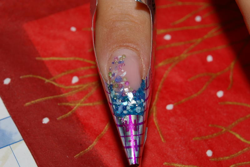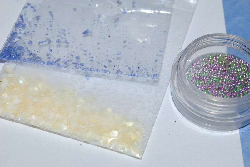 pas à pas de ma pose paillettes bleues, nacres et micro billes