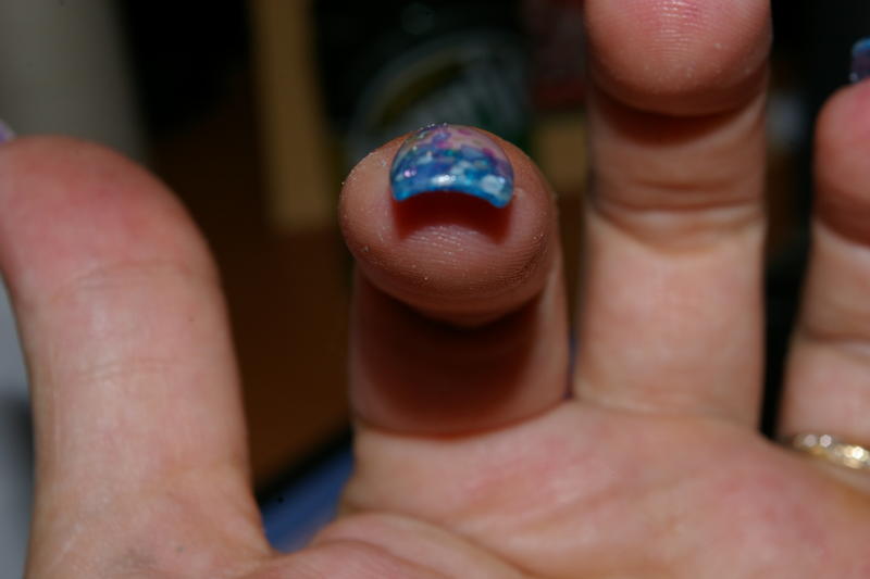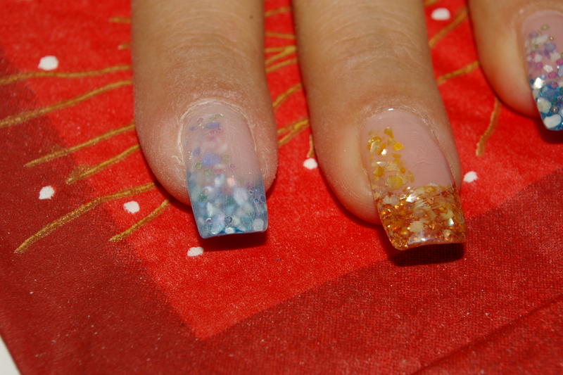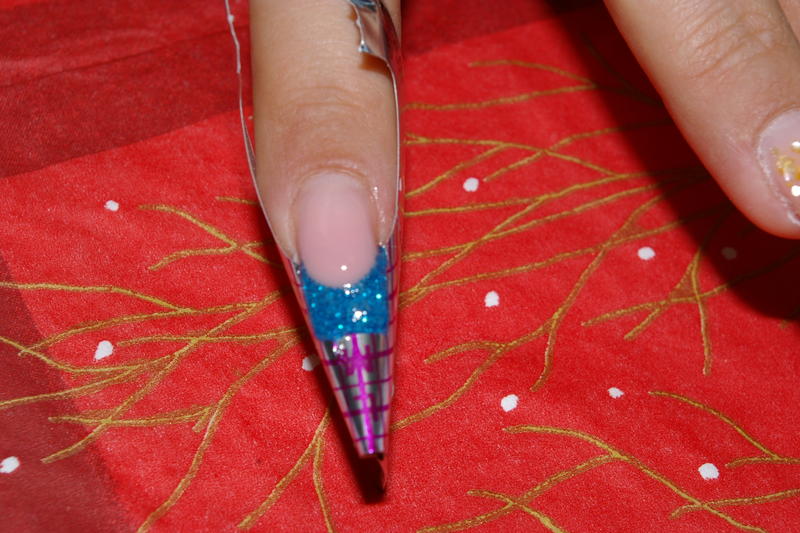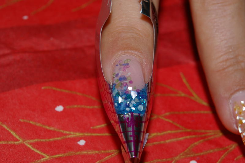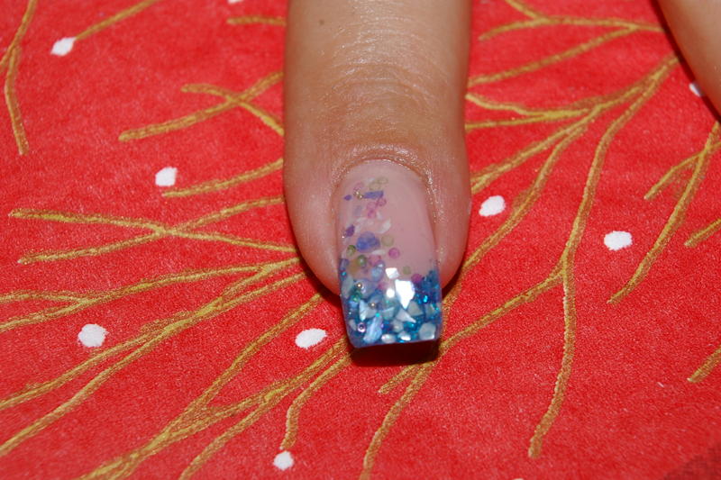 Re : pas à pas de ma pose paillettes bleues, nacres et micro billes