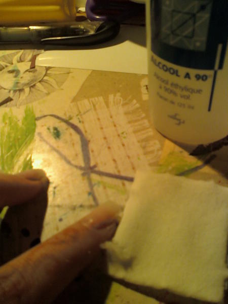 J'ai dépoussiéré puis repoussé les cuticules puis désinfecté avec le l'alcool à 90