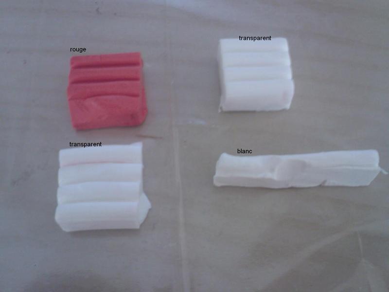 puis un 1/4 de transparent + 1 /8 de blanc ( 1 barrette) et mélanger