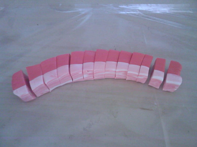 intercaler 1 lamelle de blanc à chaque coupe sur tout le long