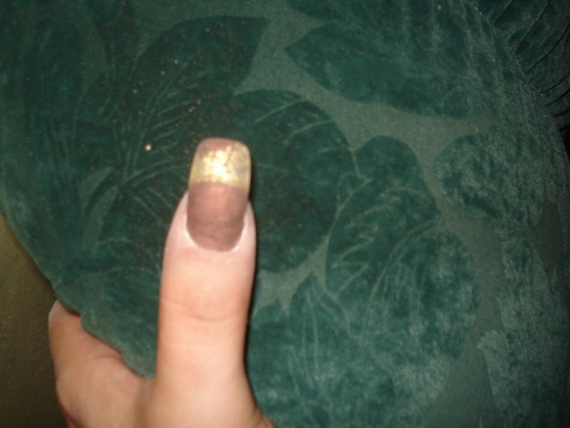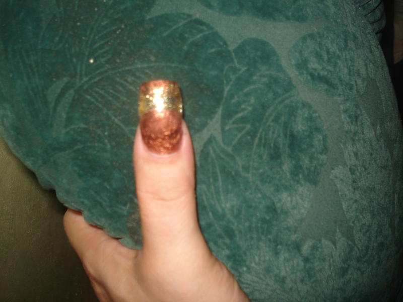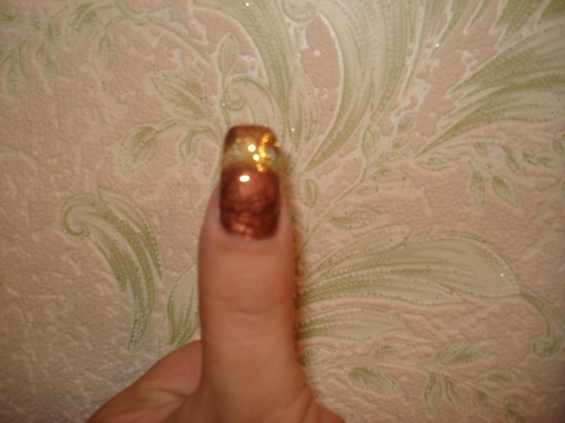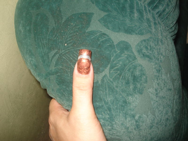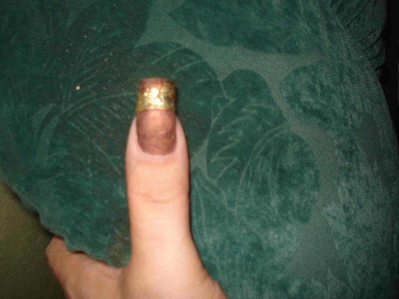 Je commence à poser mon gel de couleur, en l'occurence marron glacé que je catalyse à nouveau 2 minutes puis que je dépolis et dégraisse à nouveau.