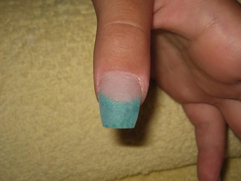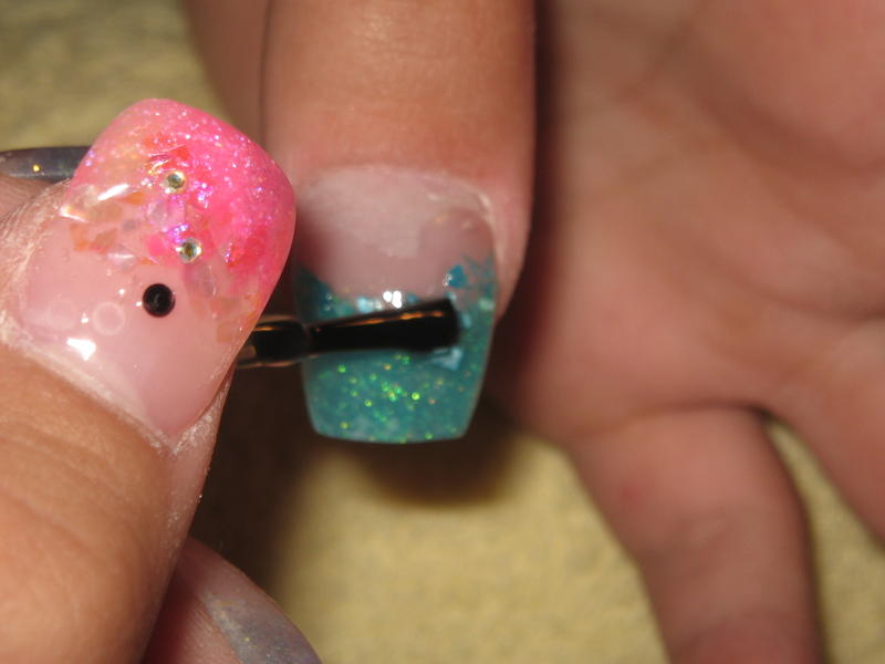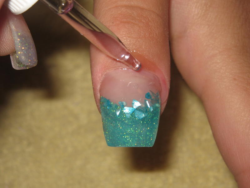 photo n°3: on pose un légère couche de finition à l'endroit désiré pour la pose des nacres et on va chercher avec notre pinceau légèrement mouillé avec le gel les nacres que l'on place délicatement