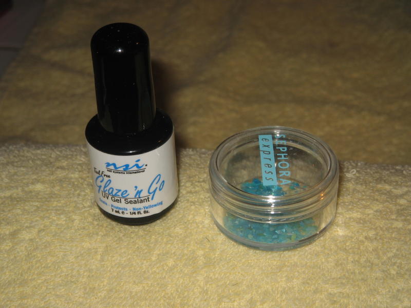 photo n°2: le gel de finition (en sachant que celui ci est celui que j'utilise sur ma résine) et les nacres