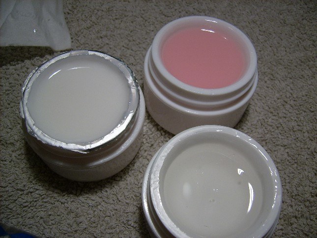 J'ouvre les gels, l'ouverture de l'opercule n'est pas facile, on s'en met un peu partout ! Le french a une couleur spéciale et le remplissage des pots est inégal : french à raz bord, clear beaucoup moins.