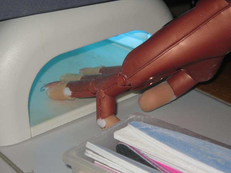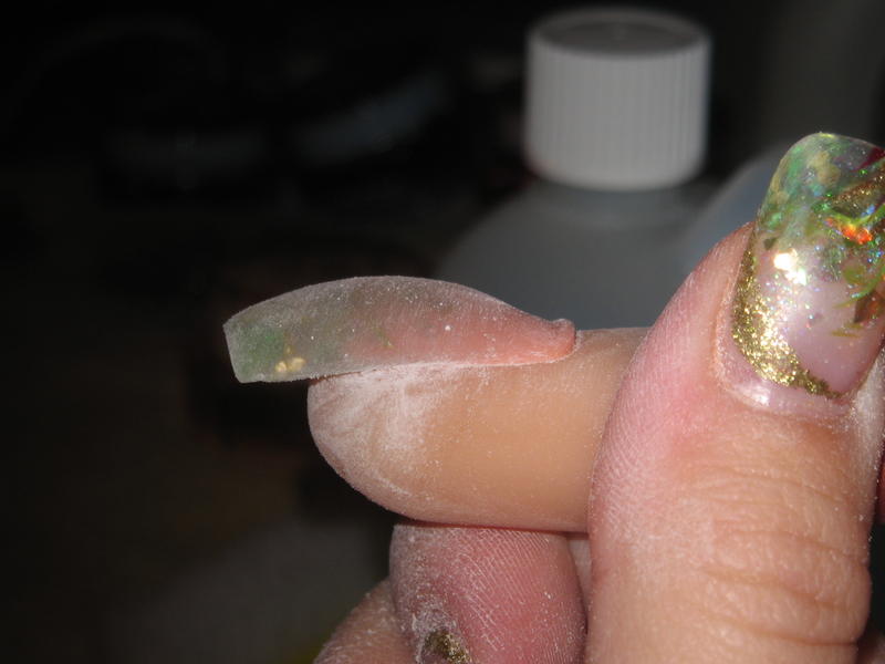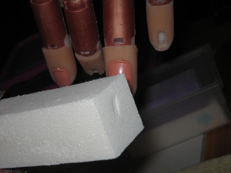 6- photo n°8 et 9: dépolir la capsule (éliminer totalement la brillance sinon le gel aura du mal à accrocher)