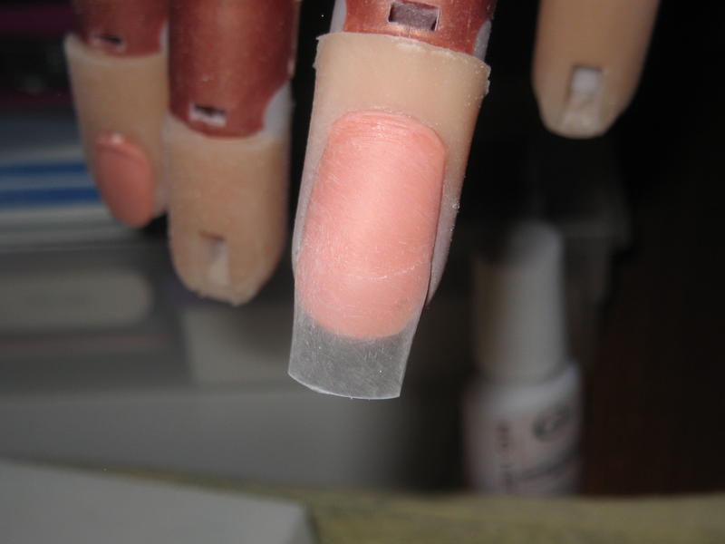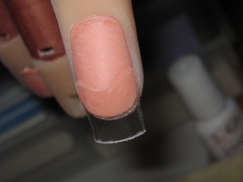 1er étape: poser une fine couche sur tout l'ongle (cette couche va servir d'adhérence pour nos décos.) bien border le bord libre pour qu'il n'y ai pas d'infiltration!!!! (que l'eau passe entre la capsule et le gel)