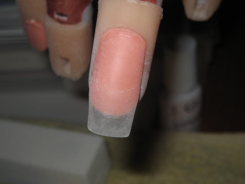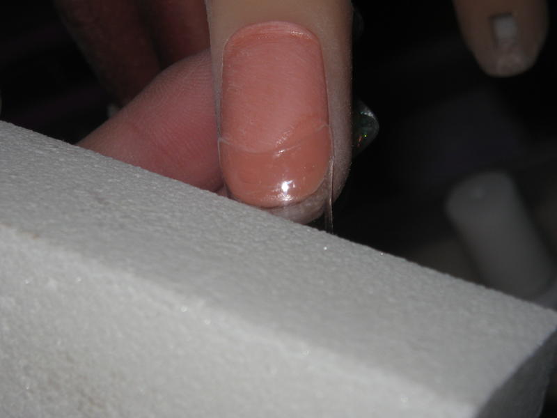 2- photo n°2: dépolir au bloc blanc l'ongle de façon à éliminer toute surface brillante