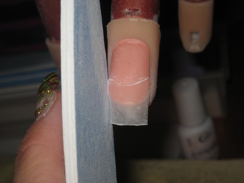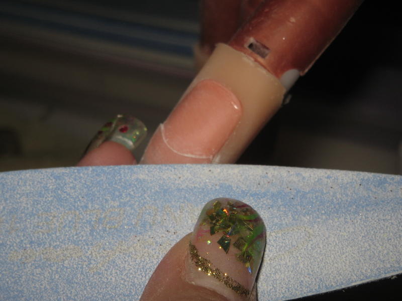 7- photo n°10 à 15: donner une jolie forme à votre ongle et limer légèrement l'encoche (bien en haut) pour fondre votre capsule à votre ongle naturel