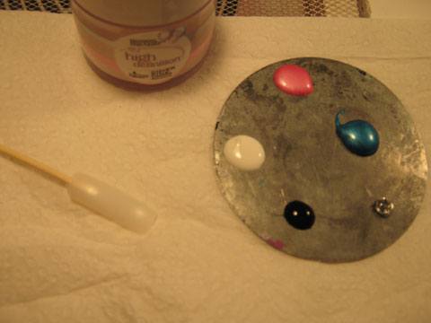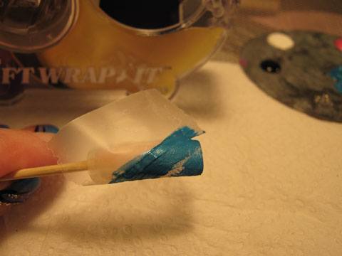 Je peints chaque extrémité en bleu et vers le centre le même bleu avec un ajout de blanc, je laisse un espace pour venir ajouter le rose.