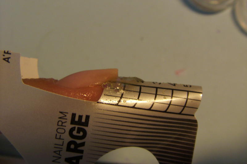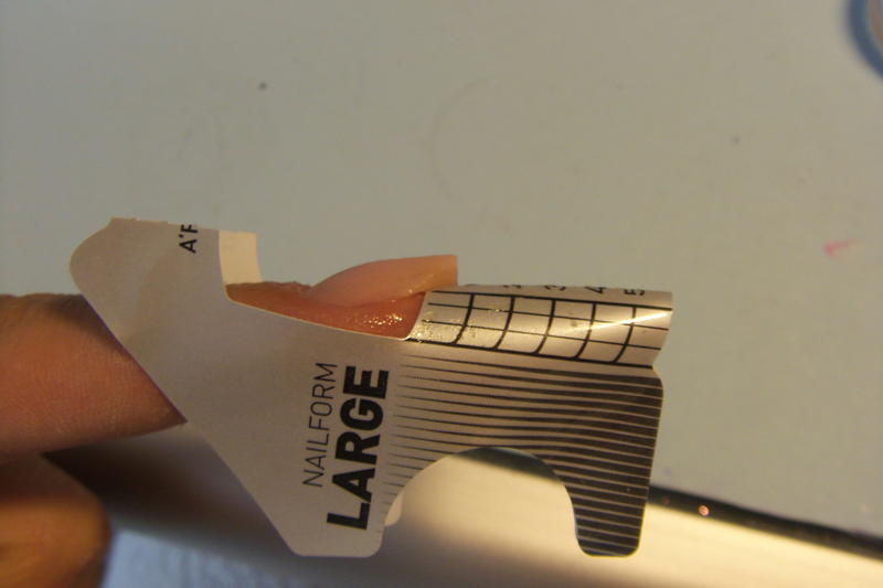 J’ai pas pris la photo de départ avec mon ongle nu et le chablon, comme vous devez le savoir pour faire un parker il faut former une arréte sur le milieu du chablon