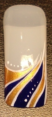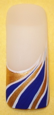 superbe,j'avais vu ta pose qui est sublime et je ne pensais pas que c'était fait comme ça,je voyais plutot la french bleue et pardessus le doré et le blanc. merci pour le pas à pas