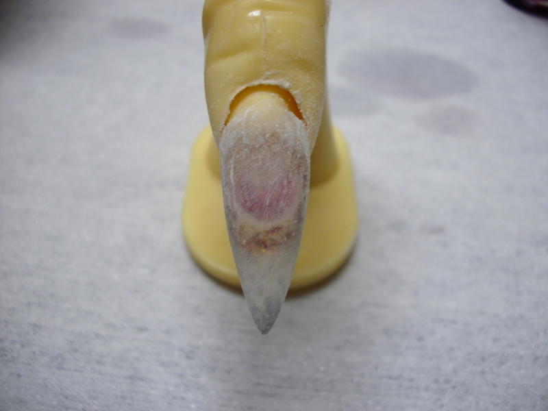 Attention! l'ongle peut etre moin epaisse mais avec le doigt d'entrainement je devai combler la petie bosse qu'il y a au niveau de la plaque, allez les filles au boulot mantenant. biz
