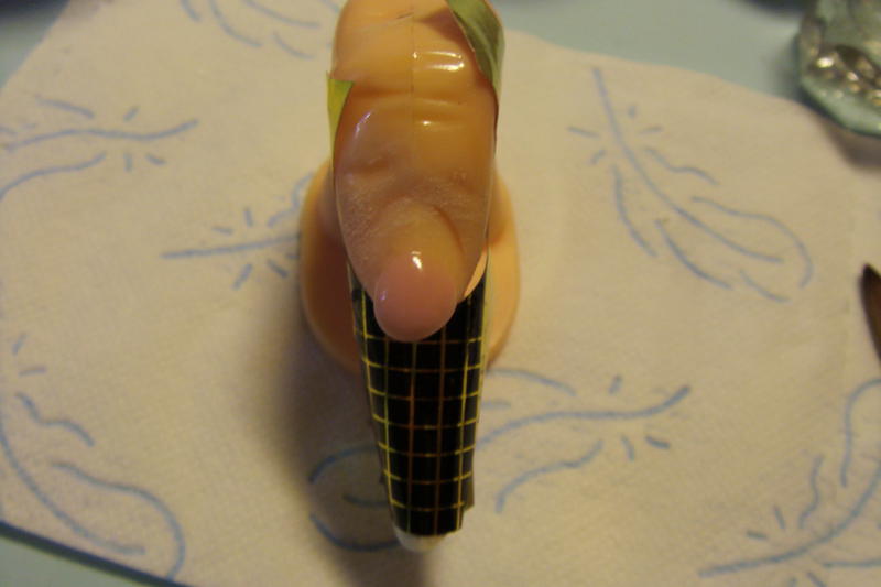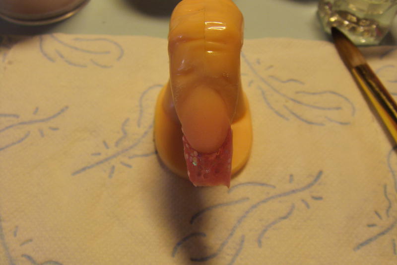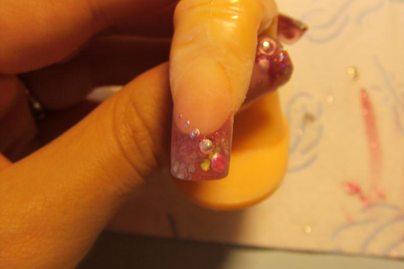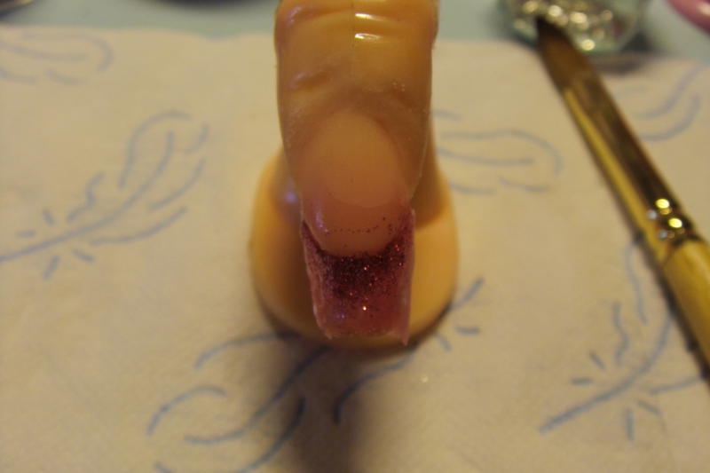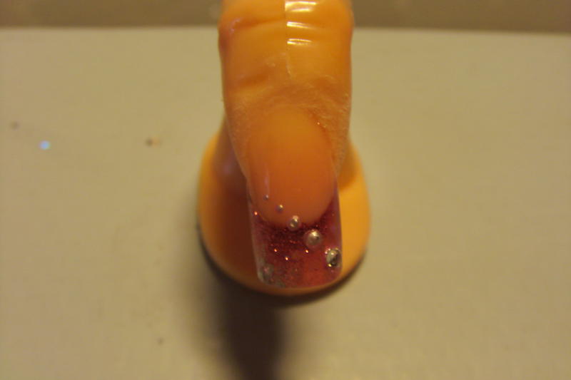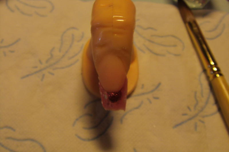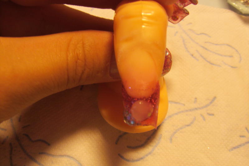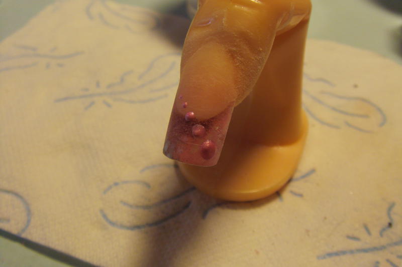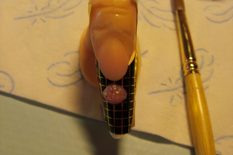 ¤ une fois le rallongement effectué on place une boule de résine rose