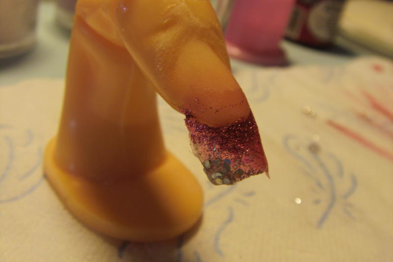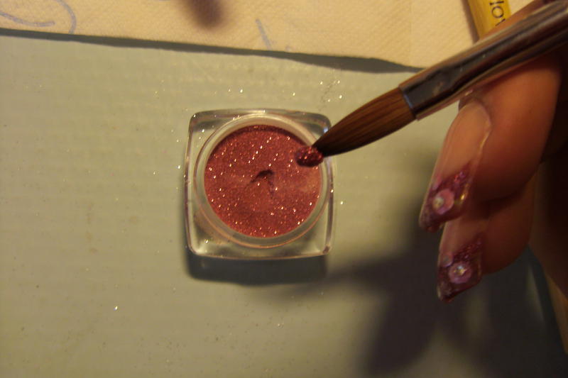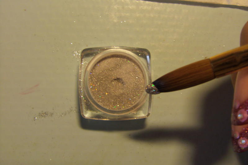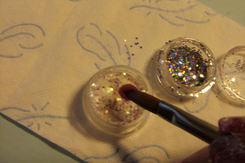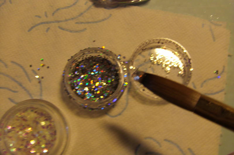 ¤ enfin je prend une mini boule de clear que je trempe dans les paillettes