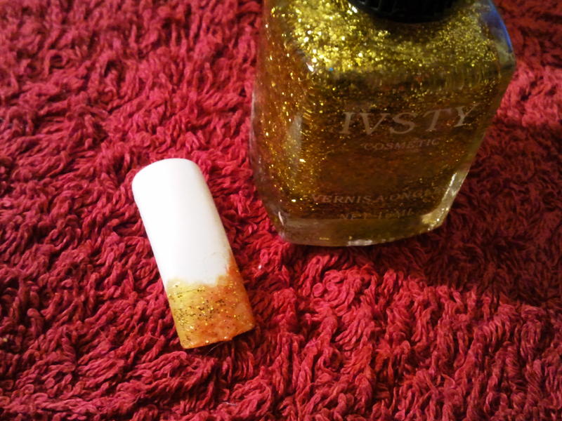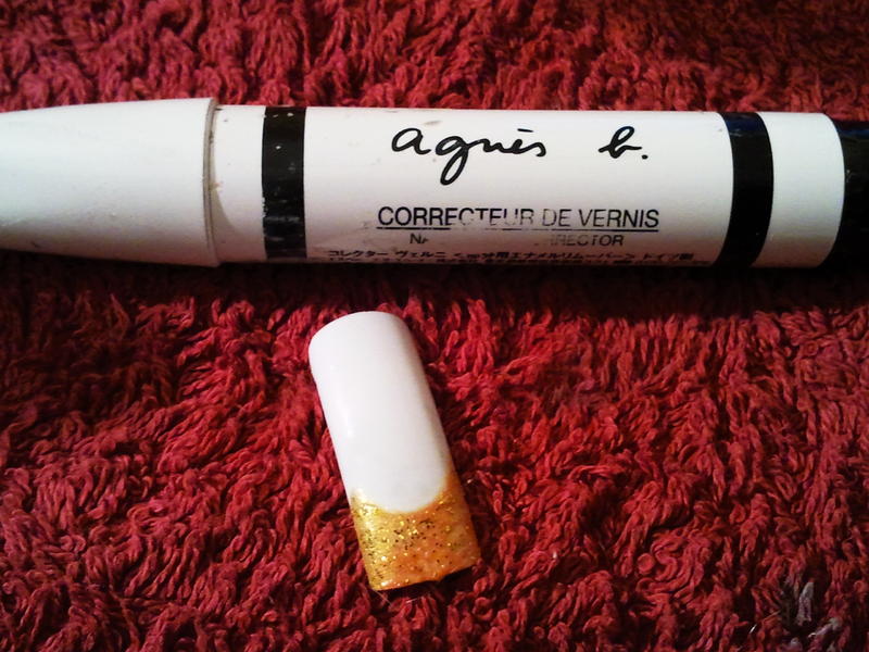 - Passer sur la french un vernis pailleté couleur or