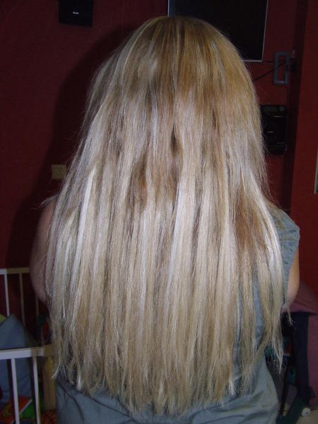 Voilà vous vous souvenez sans doutes de ma pose de vendredi ,(1 ère photo) et voici aujourdh'ui se n'est pas parfait mais dejà mieux non? faudra que je lisse plus soigneusement pmes propores chevuex qui sont très très rebelles mdr ,mais comme de toute facon je dois recommencer demain matin je voulais pas passer 1 h a le faire ce soir car g du taf a finir pour demain lol