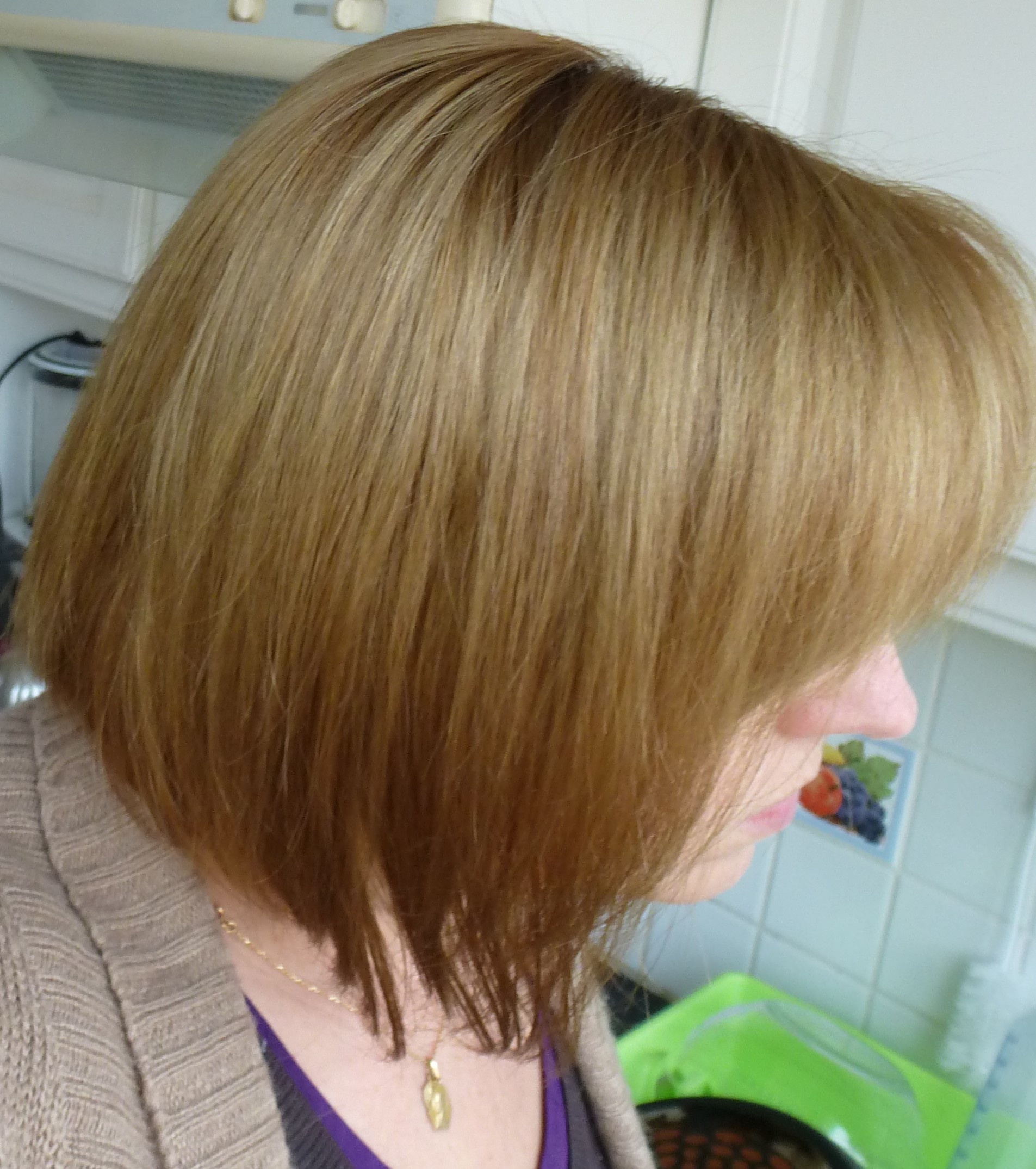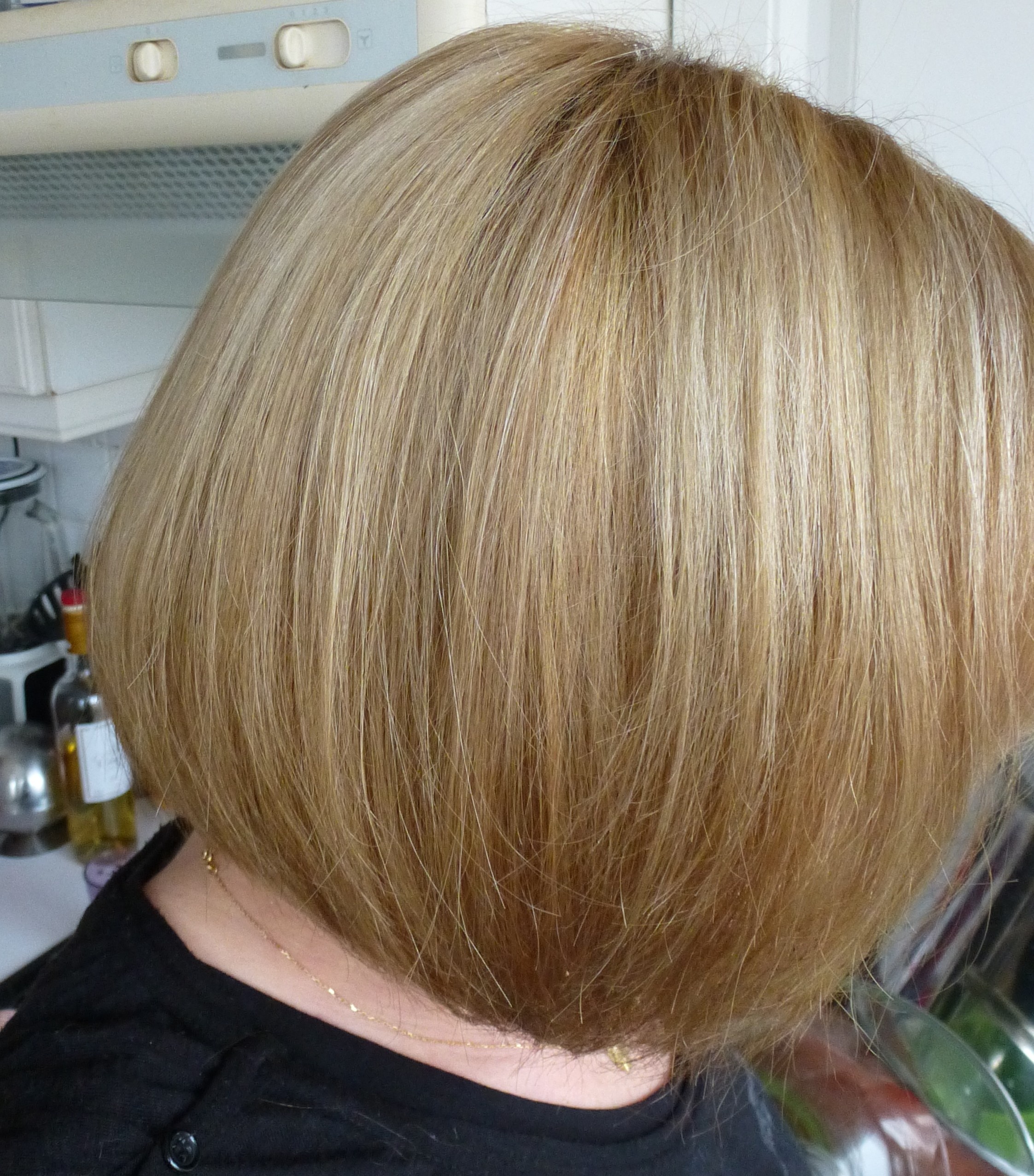 j' ai donc fait une coloration l'oreal excellence blond foncé que j' ai trouvé bêtement en supermarché , et le resultat est vraiment tres tres terne , a la lumiere du jour ca passe, mais a l interieur ca fait limite grisatre verdatre ( voir photo )