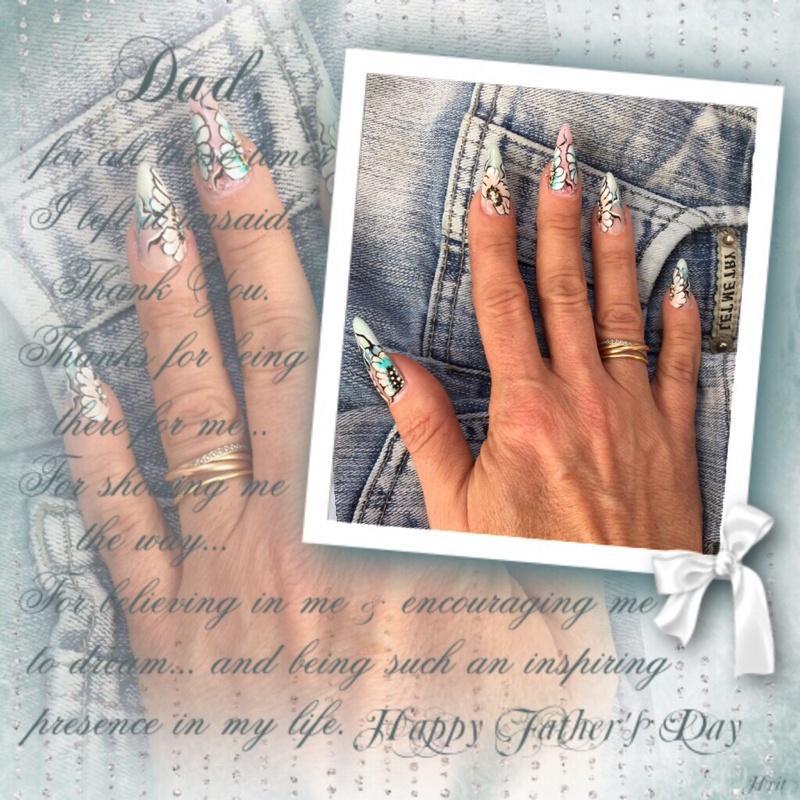 Nouveaux gels de couleur Syrene et Pink Powder, glitters AGP129 aquamarine sur la couleur Syrene et AGP129 Pink sur Pink Powder. Modelage au Diamond translucent Pink.