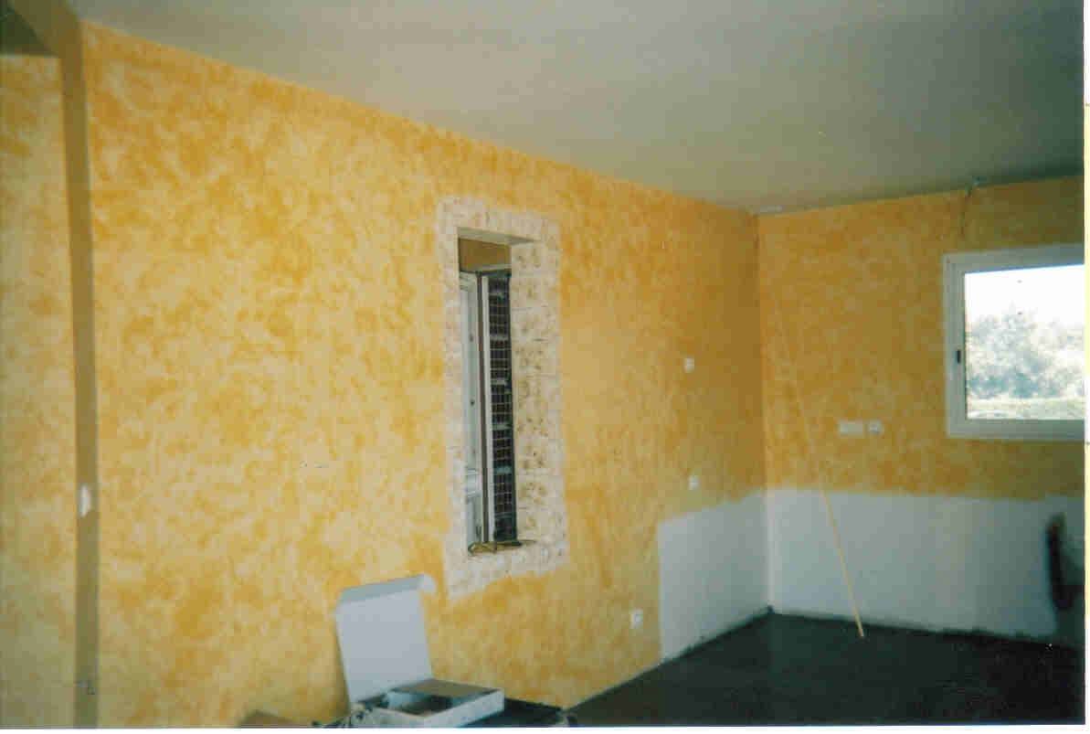 photo 4 bar patine façon cire a l'éponge et splater sur le mur
