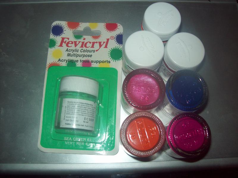 Alors cet apres midi je suis aller me promener a "Foirefouille" et j'ai trouvé des petits pots de peintures acryliques 15 ml (donc suffissant pour moi j'en aurais pas pour 20 ans comme ca)