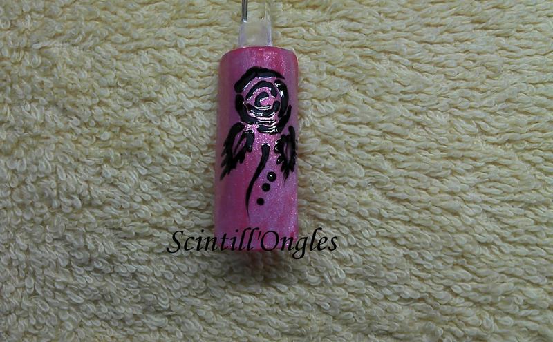 J'ai débuté par reproduire 7 étapes en dessin au crayon feutre noir sur une feuille blanche, ensuite il vous suffit de reproduire sur votre ongle au pinceau de la même méthode qu'au feutre noir