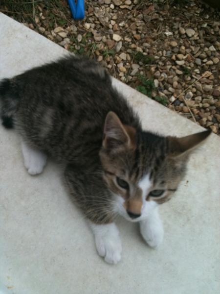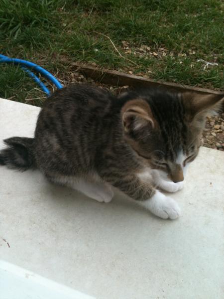 Un petit chaton mâle de 2 mois (née le 29 mai) d'une portée de 3 chatons cherche une famille aimante.