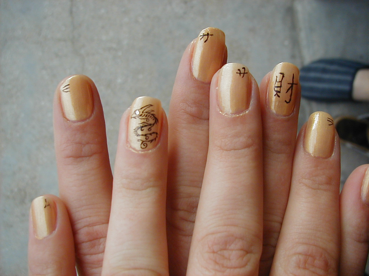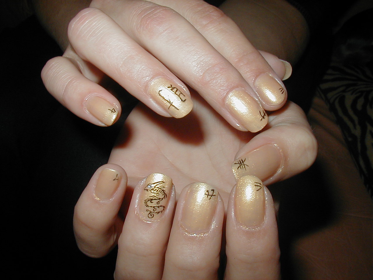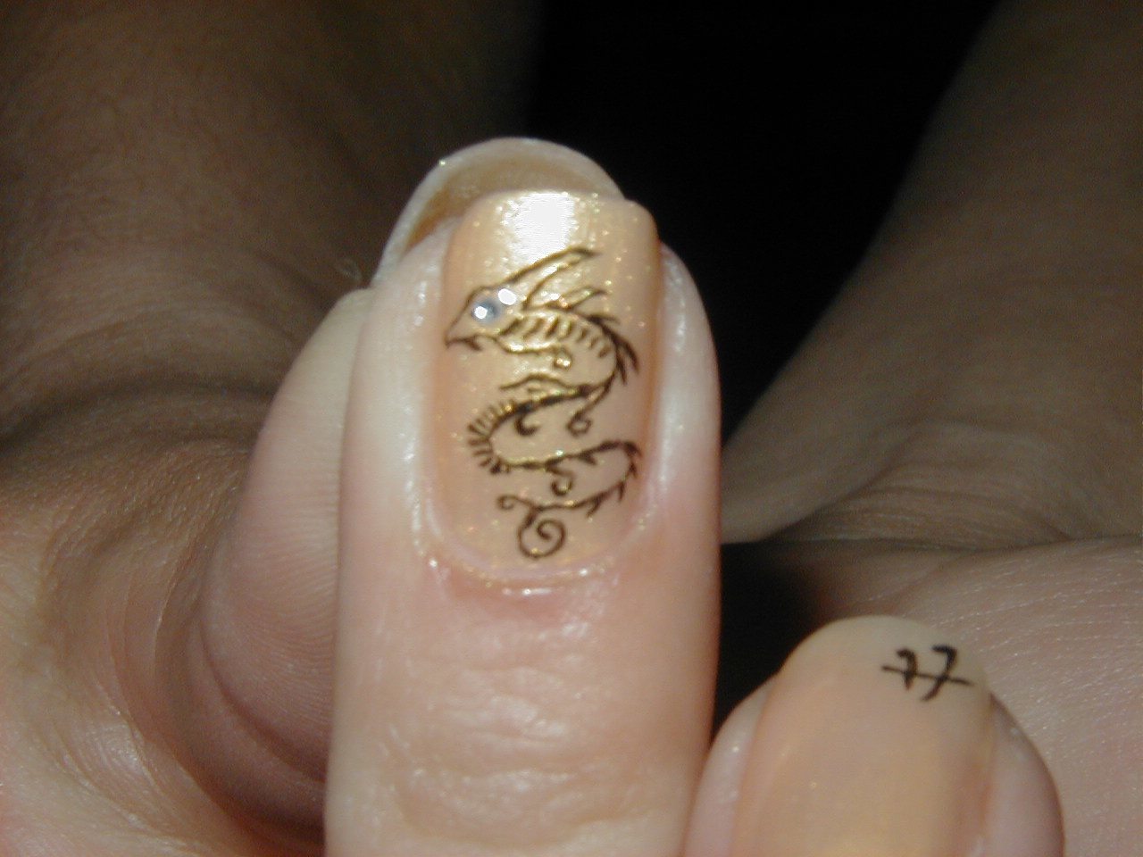 Enfin voila, j'ai essayer un petit dragon sur du vernis or-orange; vous en penser quoi???