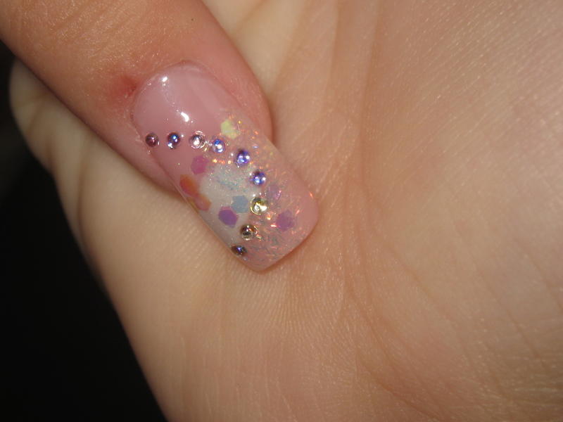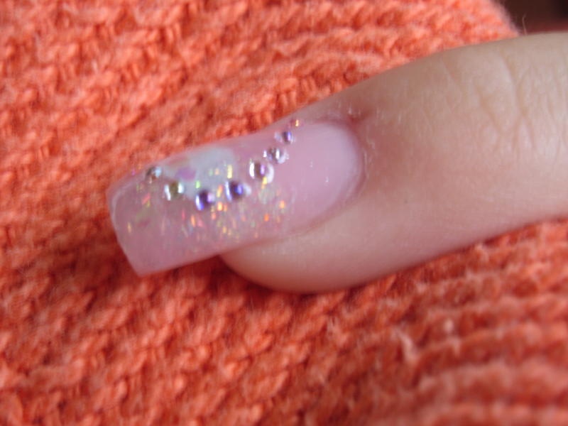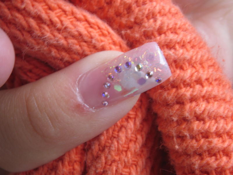 et voilou hier j'ai reçu mon gel couvrant de chez onglerie be... donc j'ai voulu l'essayer donc j'ai fait un tit essai rallongement de plaque sur mon tit doigt mais... je me suis un peu laissé emportée quand à la déco donc du coup on ne voit meme plus mon rallongement!!!!!:32-ironic::32-ironic:en tout les cas je trouve la couleur très jolie pour ma part pas laiteuse du tout...pour la déco donc j'en ai aussi profité pour tester mes nouvelles résines nfu oh que mon chéri m'a offerte...donc j'ai fait un tit mélange de 4 différentes et en plus des micro strass de chez professionnails (je vous les recommande ils sont vraiment top!!!!!!!!!!!!!) alors quand j'ai montré ça à mon chéri ce matin il m'a dit " euhhhhhhhhhhhhhh c'est très FESTIF!!!! ":38-punch::38-punch:mdrrrrrrrrrrrrrrrr