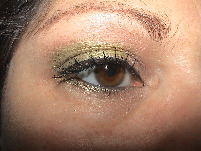 J'ai utilisé ma palette metallic de chez claire's, eyeliner, khol et mascara noir, j'ai mis du crayon à sourcil (j'ai pris un ton au dessus par rapport à d'habitude)