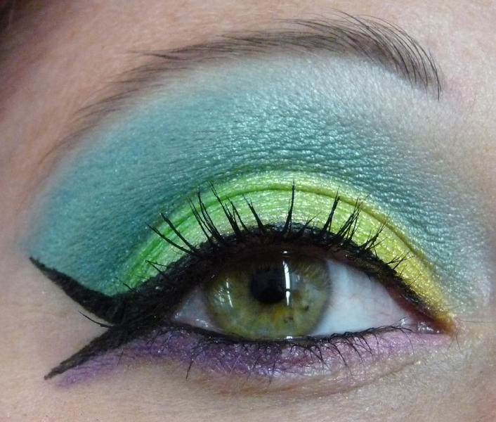 Et au passage d'autre maquillage aux ensemble de couleurs improbables que je ne porterai pas dans la rue parce que ca ne me va pas du tout loll (sauf le violet !)