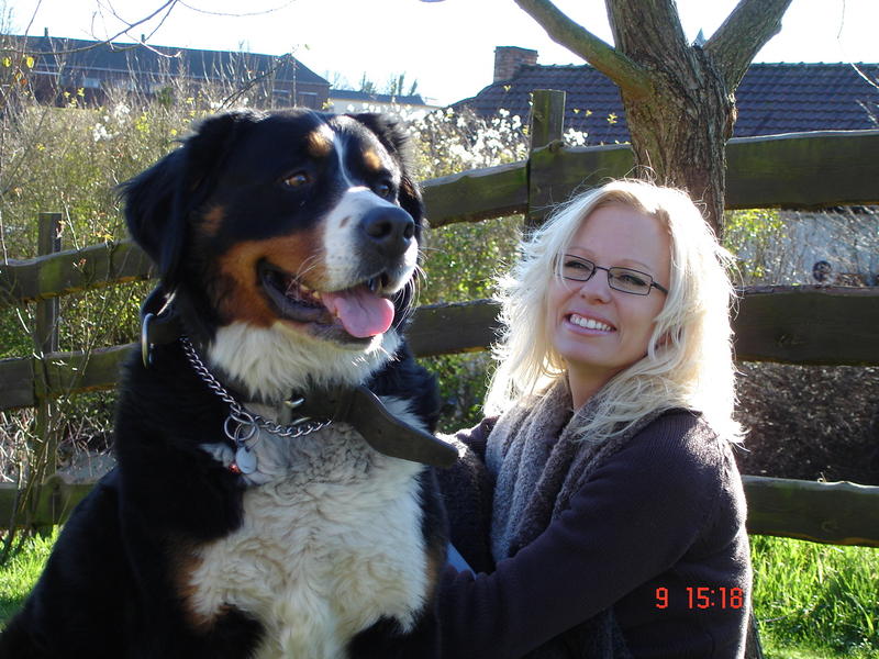 Cest une bourvier bernois et il ne lui manque que la parole!!Elle est partout avec moi,elle me suit partout je vais au marcher, a la boulangerie....elle viens avec moi et sans laisse!!!